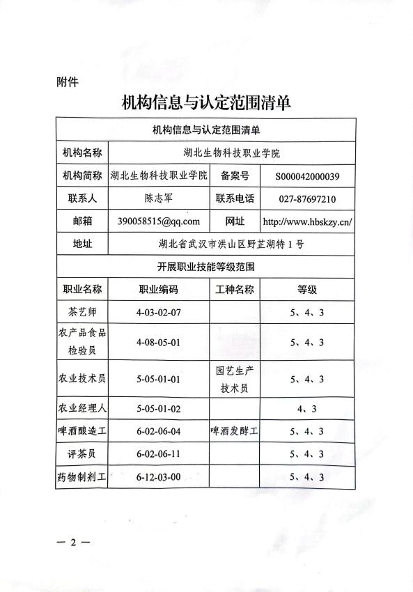 beat365在线登录是經湖北省人民政府批準、國家教育部備案的全日制公辦普通高等職業院校,是湖北省唯一一所農業類高職院校。2022年經湖北省人力資源和社會保障廳審核評估,批準為湖北省職業技能等級認定社會培訓評價組織之一,評價機構備案号為:S000042000039,在批準認定的職業(工種)範圍内為符合條件的社會人員開展培訓與評價工作。